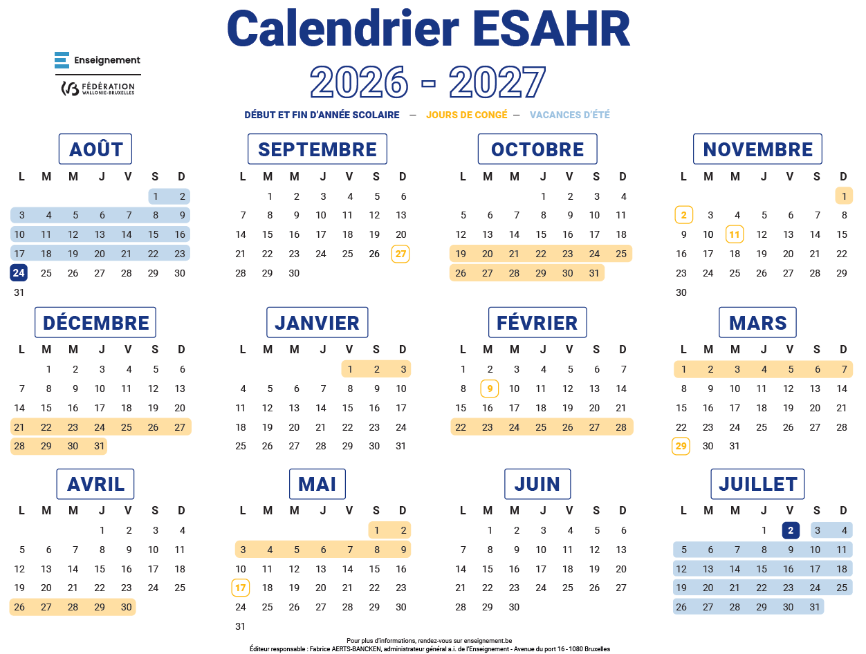 La rentrée scolaire se fera à partir du mardi 25 août 2026 (selon les ateliers)